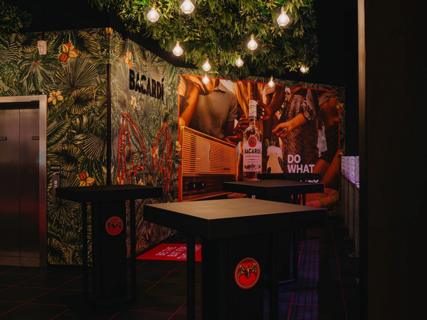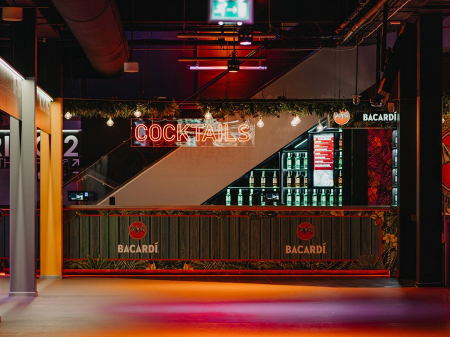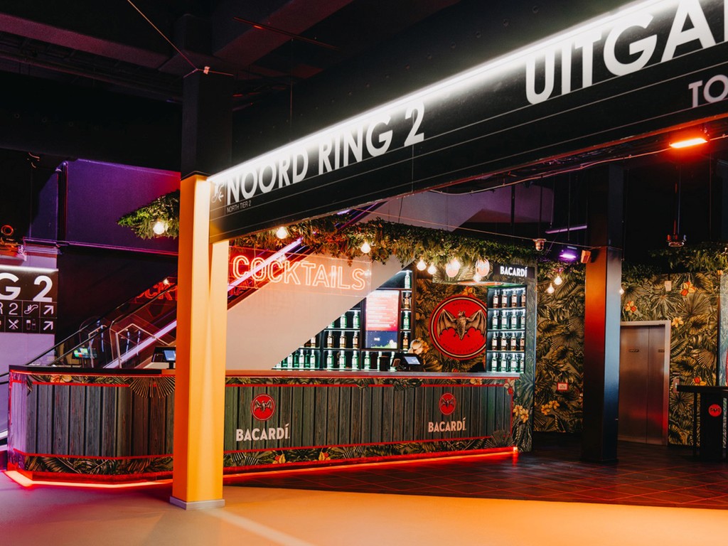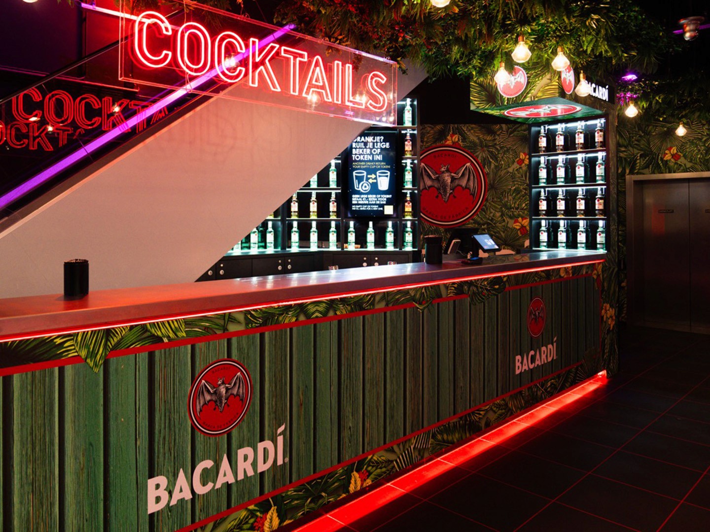 The design incorporated ceiling-high decorations and branded fixtures to ensure the Bacardi experience felt like a natural extension of the Ziggo Dome.